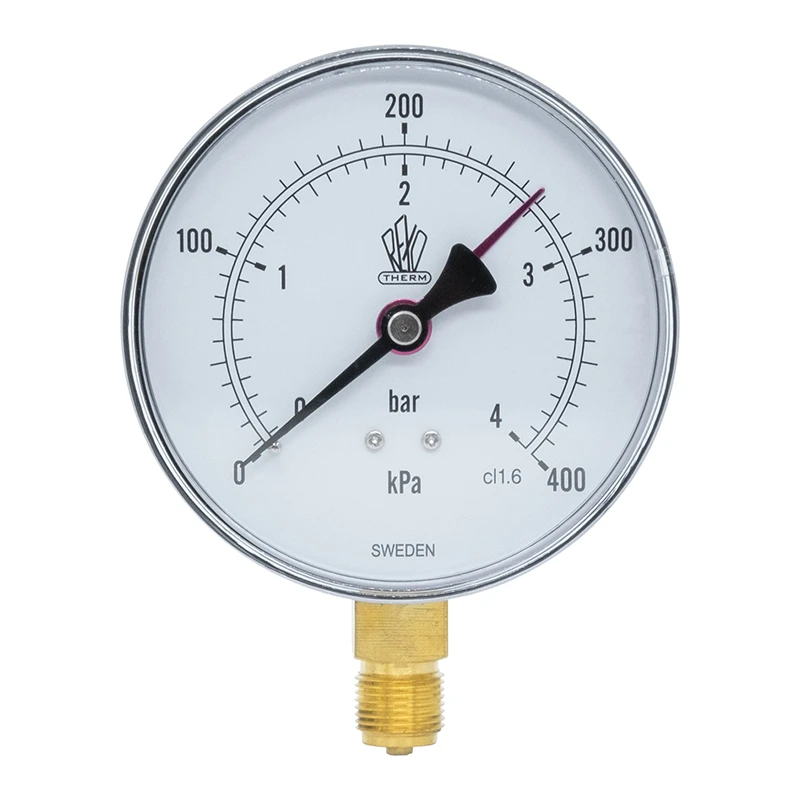 Tryckmätare i VVS-utförande för mätning av flytande ellergasformiga, icke aggressiva mätmedier.